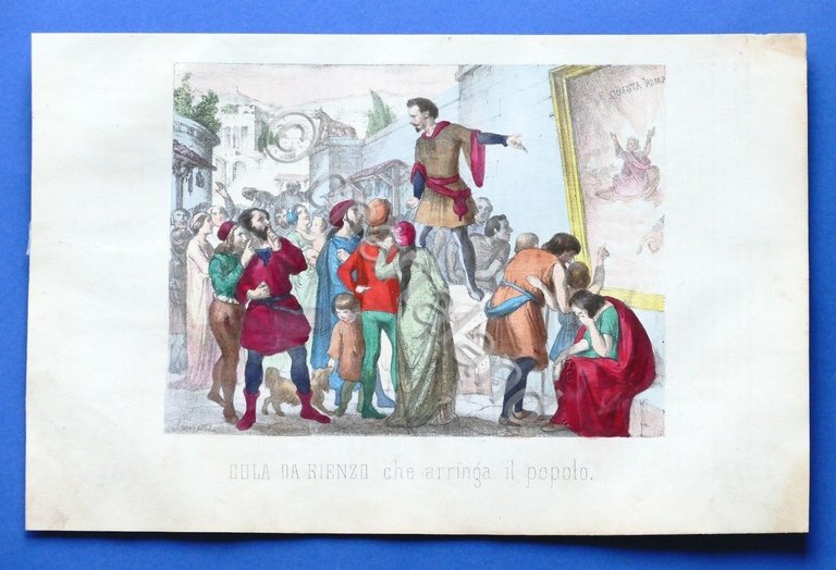 Stampa - Storia d'Italia - Cola da Rienzo che arringa il popolo - 1850 ca. | Libri antichi e moderni |