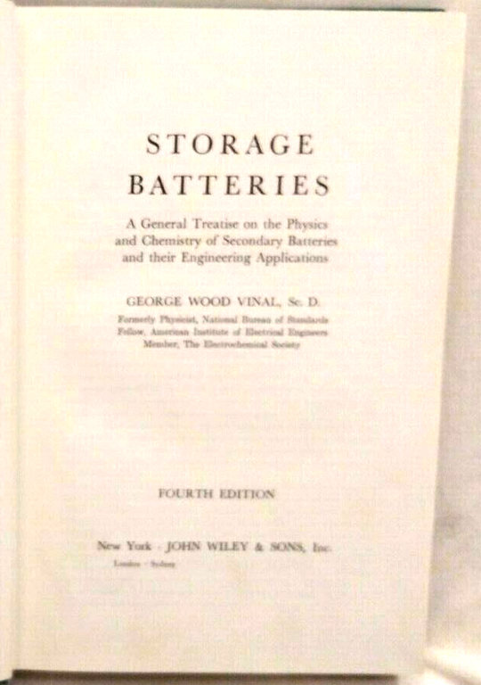 STORAGE BATTERIES di George Wood Vinal 1967 John Wiley & Sons libro fisica | Libri antichi e moderni |