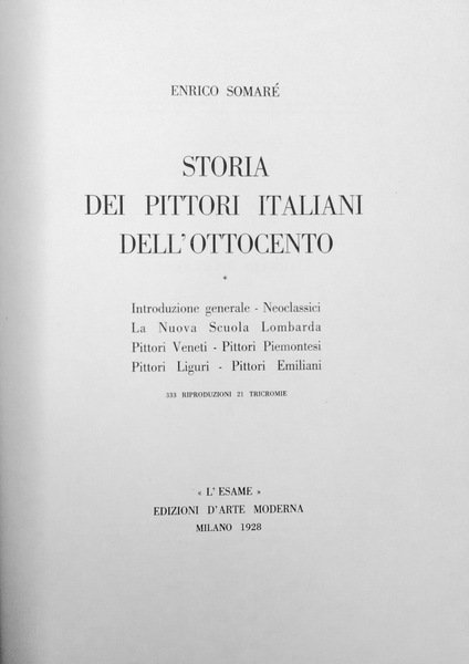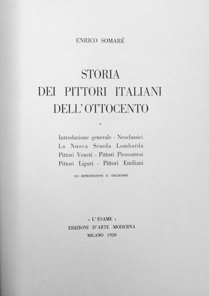 STORIA DEI PITTORI ITALIANI DELL'OTTOCENTO. | Libri antichi e moderni | SOMARE'' Enrico