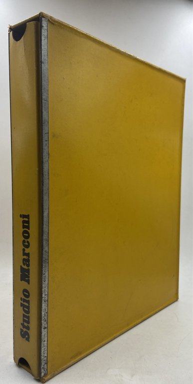 Faldone in cartoncino giallo, in custodia, cm 32 x 25, con legatura ad anelli contenente un cartoncino di richiesta dati dei clienti per aggiornamento dell'indirizzario e alcuni cataloghi (fogli sciolti con fori fustellati, cm 27.5 x 20.5) della galleria fondata da Giorgio Marconi nel 1965: 1. GIANNI COLOMBO. [1-16] Ottobre 1970. Catalogo composto di 6 carte incluse le copertine, con alcune fotografie in nero, dichiarazione di Vincenzo Agnetti, una tavola con illustrazione del progetto di Agnetti e Colombo, biografia e regesto delle esposizioni sulla terza di copertina. 2. JAMES COLEMAN. [1-16] Ottobre 1970. Sei carte incluse le copertine, testo di Cyril Barrett e James Coleman, 4 fotografie in nero, una tavola in carta millimetrata con schema tecnico, nota biografica. 3. LABORATORIO 1. 17 ottobre 1970. CARLOS FRANQUI. El circulo de piedra. Catalogo composto di 8 cartoncini numerati (+ 1 di copertina) stampati in viola, testi di Carlos Franqui, Luigi Nono e altri. La mostra, che si concluse il 5 novembre 1970, espose opere di Valerio Adami, Alexander Calder, Jorge Camacho, Cárdenas, César Baldaccini, Corneille, Erró, Jorn Asger, Piotr Kowalski, Wifredo Lam, Joan Miró, Edouard Pignon, Paul Rebeyrolle, Michel Tapié ed Emilio Vedova, con musica di Luigi Nono. Con la riproduzione delle opere e nota sul volume pubblicato da Upiglio con le grafiche esposte. 4. HSIAO. 6 [-30] Novembre 1970. Sei carte incluse le copertine, con testo di Hsiao Chin, fotografie in nero, una tavola a colori, biografia. 5. LABORATORIO 2. VALERIO ADAMI. 11 dicembre 1970 [-13 gennaio 1971]. Dieci fogli in cartoncino, illustrati in nero. 6. MARIO SCHIFANO. Dicembre 1970. Catalogo composto di 6 carte incluse le copertine, con 11 pagine di tavole (ciascuna con 2 immagini, 4 a colori e 18 in nero) , testo critico «Schifano, ritratto di un artista come paesaggio» di Tommaso Trini, biografia e regesto delle esposizioni sulla terza di copertina. La mostra si tenne tra l'11 dicembre 1970 e il 13 gennaio 1971. 7. LABORATORIO 3. RICHARD HAMILTON. 14 gennaio 1971 [-3 febbraio 1971]. Sei cartoncini e un foglio di carta lucido. Catalogo dedicato alle edizioni recenti di Hamilton (Kent State, Solomon R. Guggenheim, Portrait of the artisti by Francis Bacon), con testo dell'artista in inglese e traduzione di Daniela Palazzoli a parte. Lieve alone in copertina. 8. GASTONE NOVELLI. 4 febbraio [-4 marzo] 1971. Mensile n. 1 febbraio 1971. Catalogo composto di 16 pagine incluse copertine, con testo dell'artista, 16 illustrazioni (una a colori), biografia e regesto delel esposizioni. 9. ANTONIO DIAS. Mensile n. 2 marzo 1971. Dieci carte (tre in velina), con 7 tavole dell'artista, biografia e regesto. La mostra si tenne dal 1 al 31 marzo 1971. 10. LABORATORIO 5. PARDI "ECHO" un film e un progetto per un libro di figure. 24 marzo 1971. Mensile n. 2 bis marzo 1971. Quattro cartoncini impressi in nero, con nota di Franco Quadri e 4 tavole; durante l'evento venne proiettato il film 8mm Echo con colonna sonora realizzata con Mino Ceretti e Carlo Ruffini. 11. PINO SPAGNULO. Mensile n. 3 bis aprile 1971. Sette carte incluse copertine, con fotografie in nero di Mario Carrieri. Mostra organizzata in collaborazione con il Salone Annunciata, dal 1 al 30 aprile 1971. 12. CALDER. Mensile n. 4 aprile-maggio 1971. Copertina litografica a 2 colori e 28 pagine con 24 fotografie per lo più in nero di Claude Gaspari e Ugo Mulas, testo di Marco Valsecchi. La mostra di Alexander Calder, organizzata in collaborazione con la Galerie Maeght di Parigi, si tenne tra il 1 aprile e il 31 maggio 1971. 13. LABORATORIO (4) DEL PEZZO. Mensile n. 3 aprile 1971. Catalogo composto di 10 cartoncini, con testo di Giorgio Soavi. La mostra di Lucio del Pezzo si tenne tra il 1 aprile e il 30 giugno 1971. 14. CARL FREDERIK REUTERSWARD. LAZY LASERS. Mensile n. 5 maggio-giugno 1971. Copertina e 16 pagine illustrate a colori e in nero, testo in inglese con traduzione di Roberto Sanesi. 15. LABORATORIO 6. ARNALDO POMODORO. UN CENTESIMO DI SECONDO. Mensile n. 5 bis giugno 1971. Composto di 4 cartoncini, con «appunto teorico-critico» da una conversazione con Francesco Leonetti.