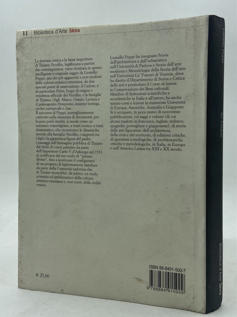 Cartonato editoriale con sovraccoperta (aloni e macchie di polvere), cm 22 x 16, pp 170 (2), alcune illustrazioni in nero nel testo, XX tavole a colori. Saggio dello storico dell’arte bellunese, tra i massimi esperti del Rinascimento veneto, dedicato a Tiziano Vecellio e al suo rapporto con il Cadore e con la sua famiglia - bottega e i figli Marco, Orazio, Lavinia e Pomponio; con appendice documentaria.