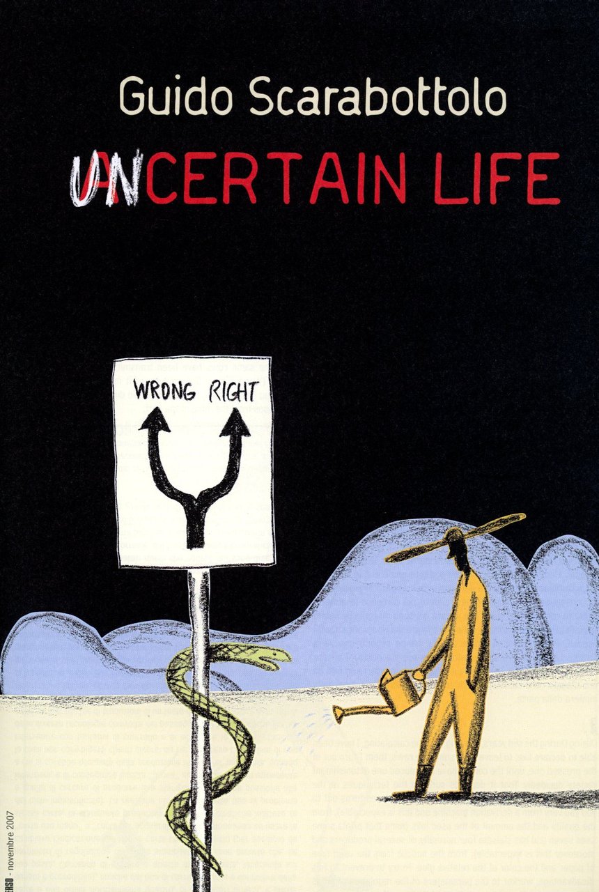 Libro d'artista pubblicato in occasione della mostra alla Galleria L'Affiche, Milano, 15 novembre - 9 dicembre 2007. Testi di Adriano Altamira e Gofredo Fofi. 22 tavole a piena e doppia pagina. Al centro allegato supplemento con testo (Uncertain life) e disegni di Sscarabotto . 4to. pp. 30. . Perfetto (Mint). . . .