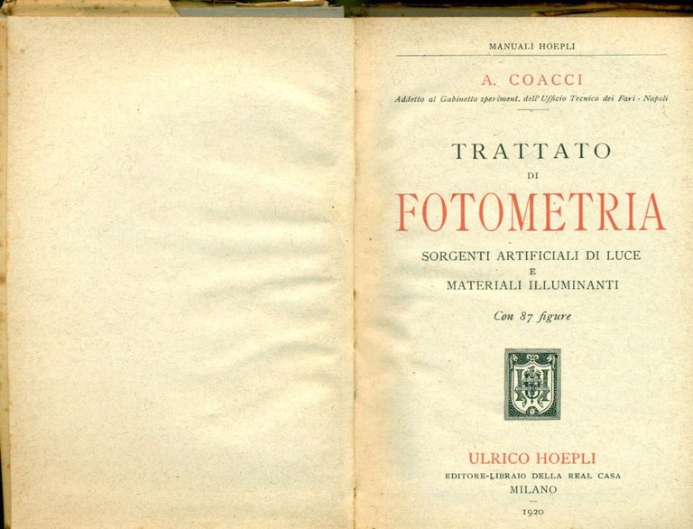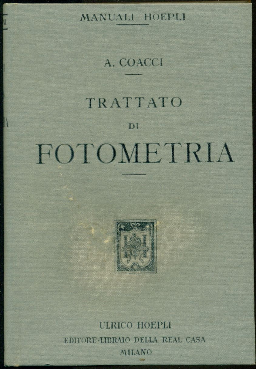 Trattato di fotometria. Sorgenti artificiali di luce e materiali illuminanti | Libri antichi e moderni | COACCI A.,