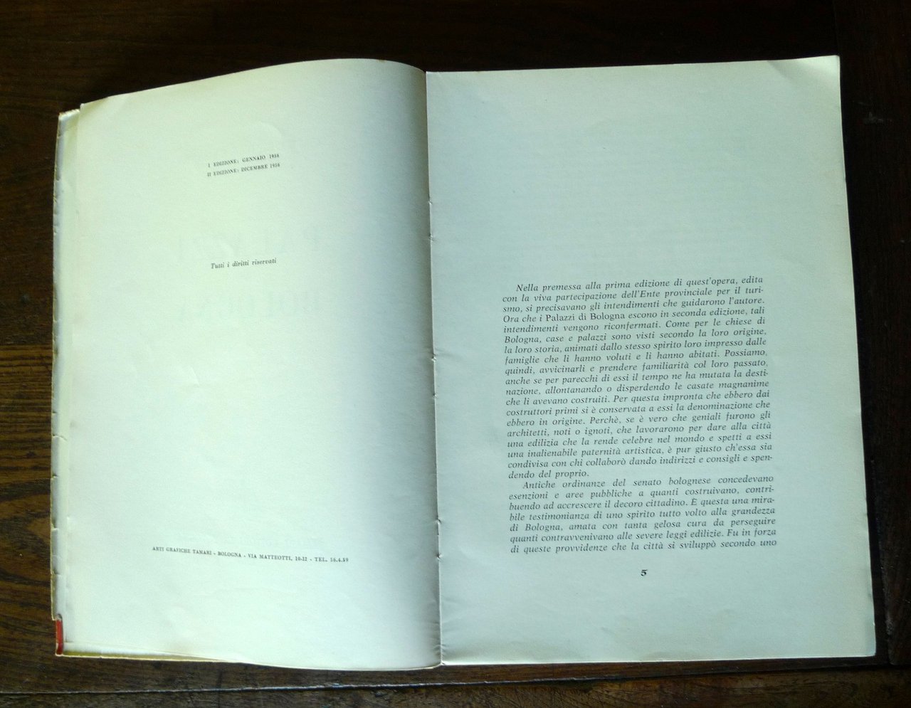 Umberto Beseghi,PALAZZI DI BOLOGNA.Tamari Editori in Bologna, 1957,II edizione,brossura, 24x17 cm., pp.373,illustrazioni in bianco e nero,peso: g.700cod.10345CONDIZIONI DEL LIBRO: molto buone,imperfezioni alla copertina,strappetto al dorso lungo la cerniera,interno ottimo