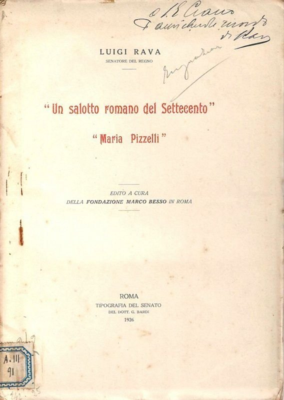 'Un salotto romano del settecento' 'Maria Pizzelli'. - Edito a cura della Fondazione Marco Besso in Roma.