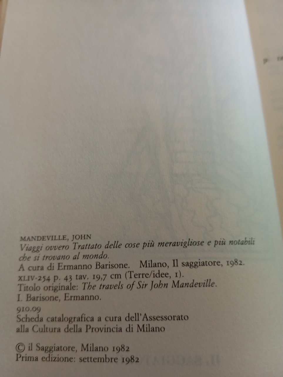 Viaggi ovvero trattato della cose, John Mandeville, Il Saggiatore, 1982