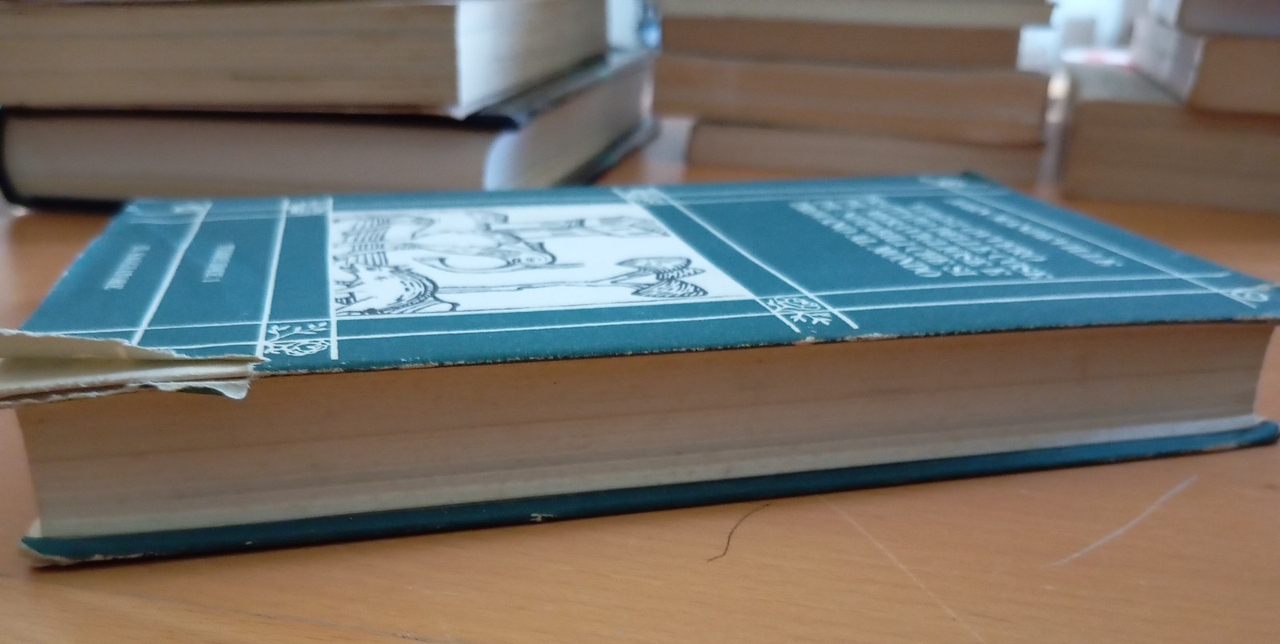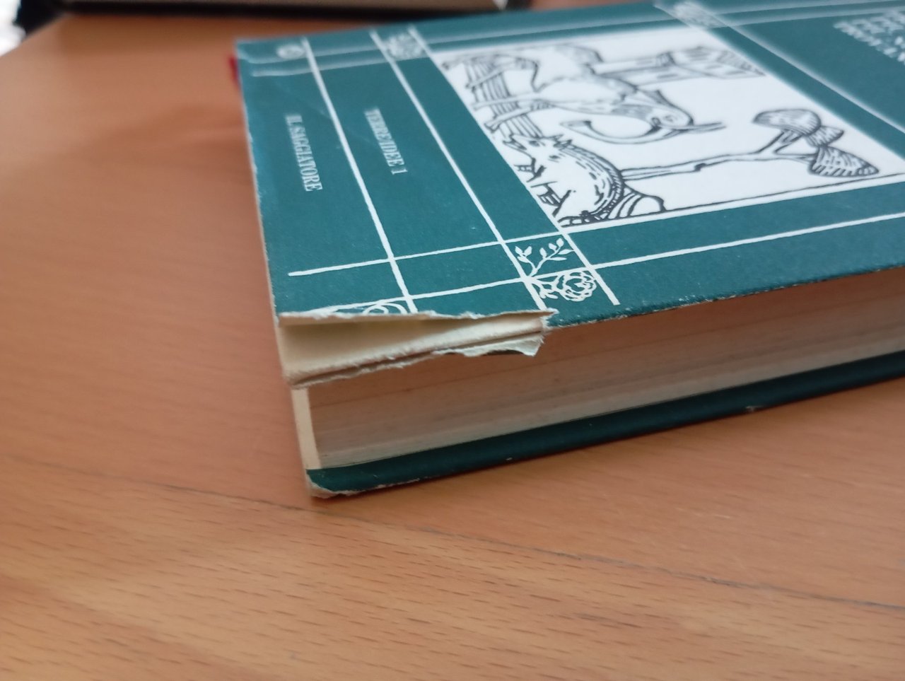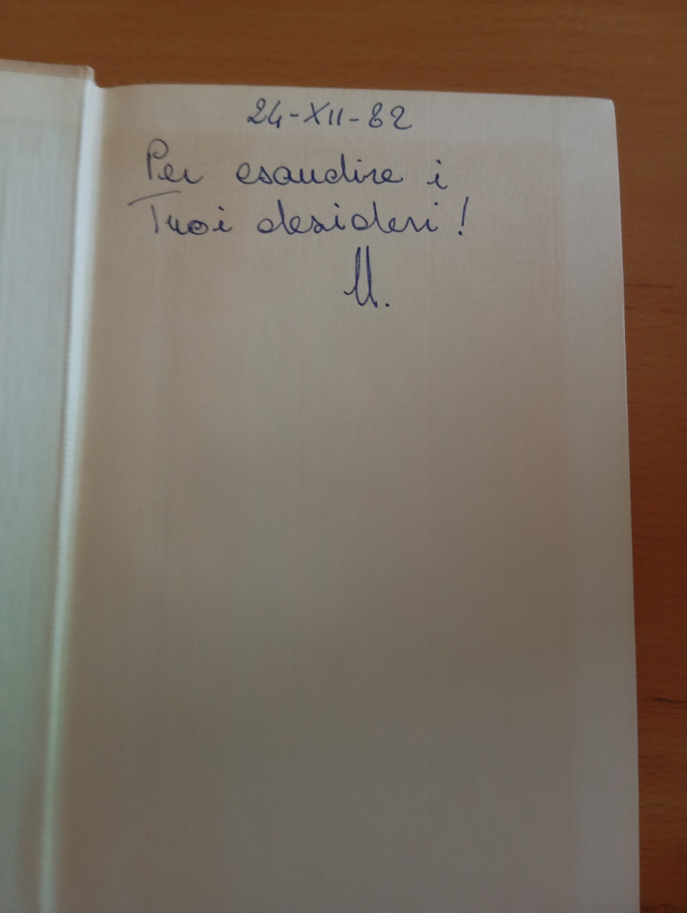 Sovracopertina con alcuni segni di usura e piccoli strappi, come da foto. Tagli scuriti, presente dedica iniziale, come da foto