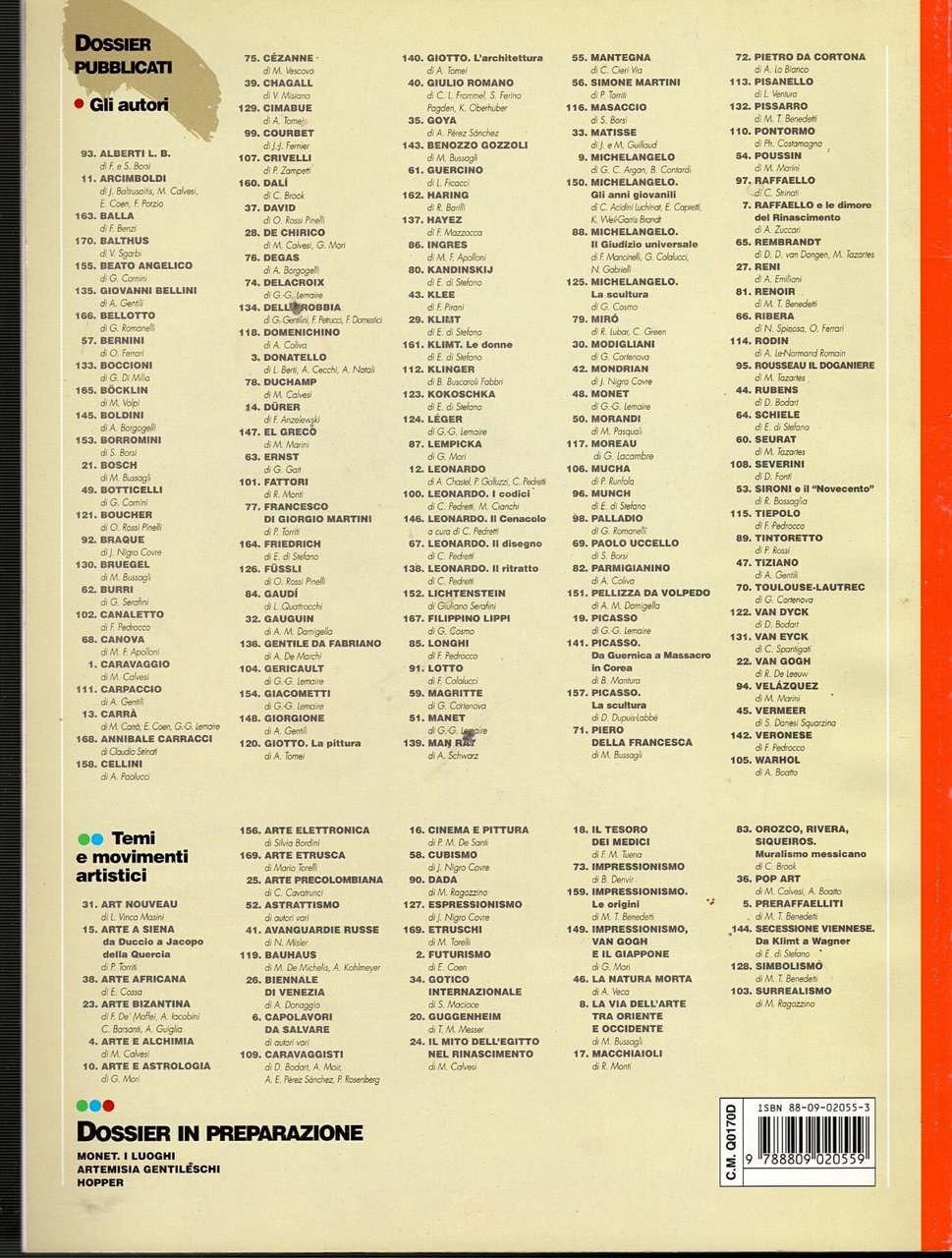 Monografia numero 170 del settembre 2001 di Artedossier. 50 pagine. Ricchissimi di illustrazioni a colori nel testo. Copertine editoriali in brossura illustrata a colori.