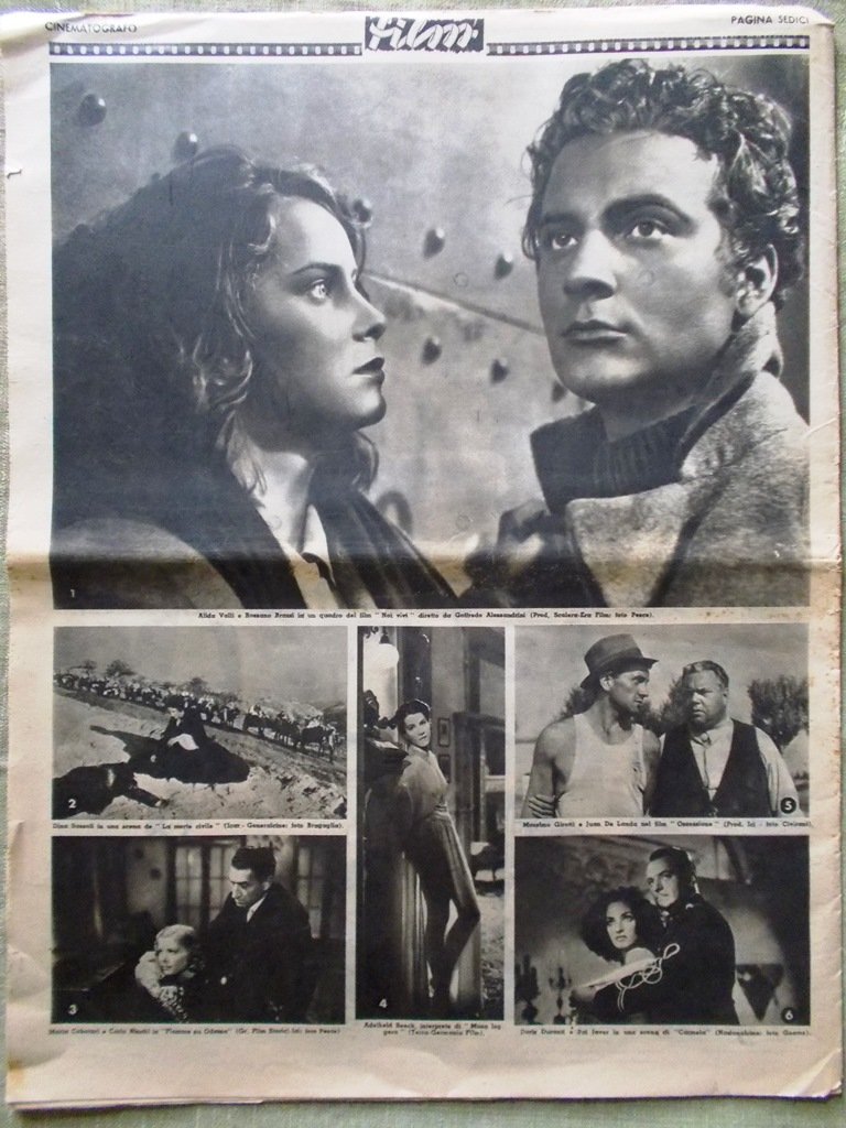 Cinematografo: Alida Valli, Rossano Brazzi, Dina Sassoli, Doris Duranti, Massimo Girotti.