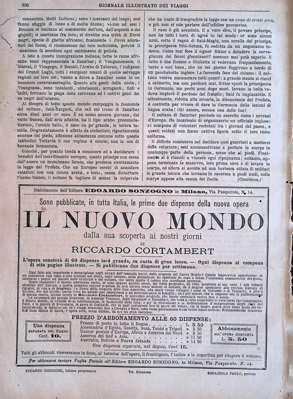 Giornale Illustrato dei Viaggi 18 Giugno 1885 Carl Huber Parigi Lago Tanganika