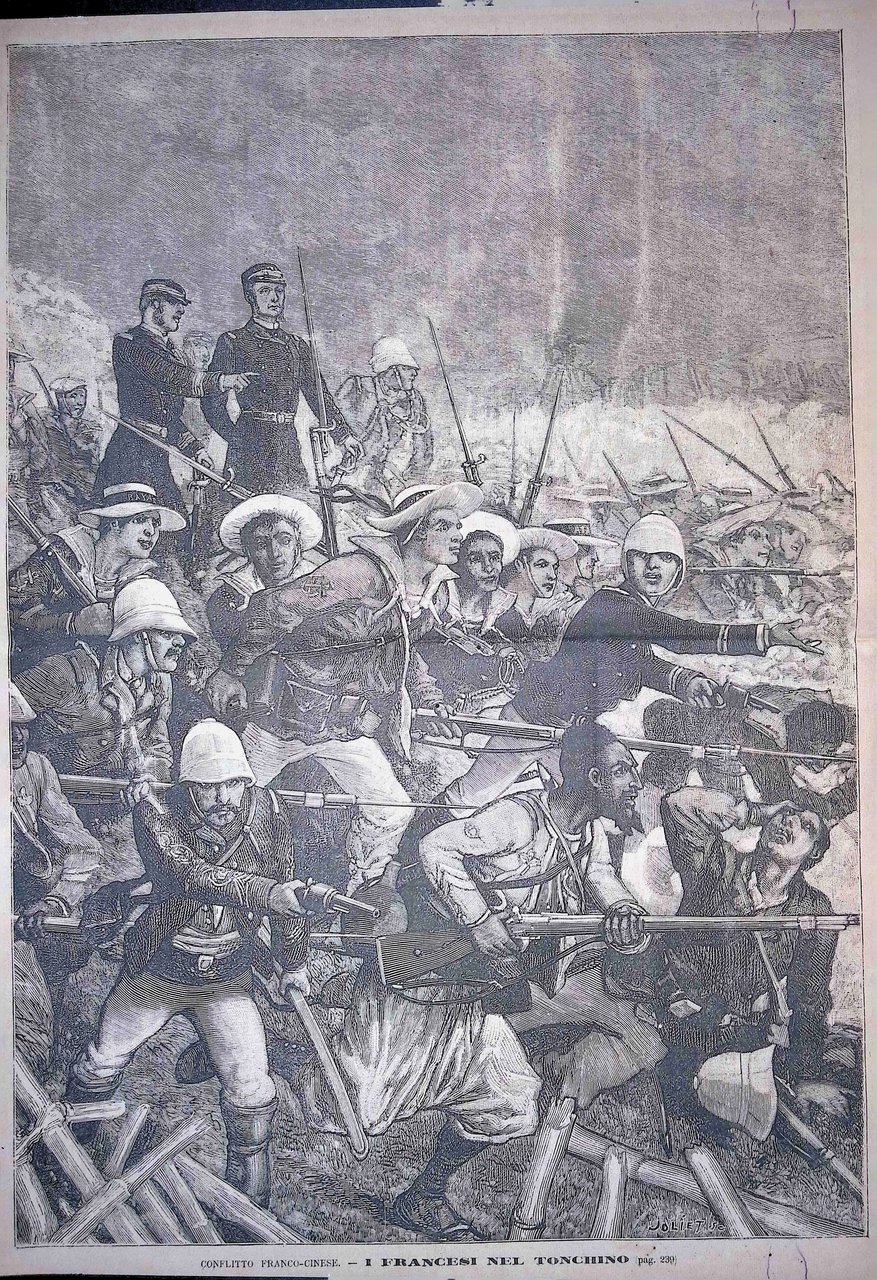 Conflitto franco-cinese - i francesi nel Tonchino (Stampa a 2 pagine)