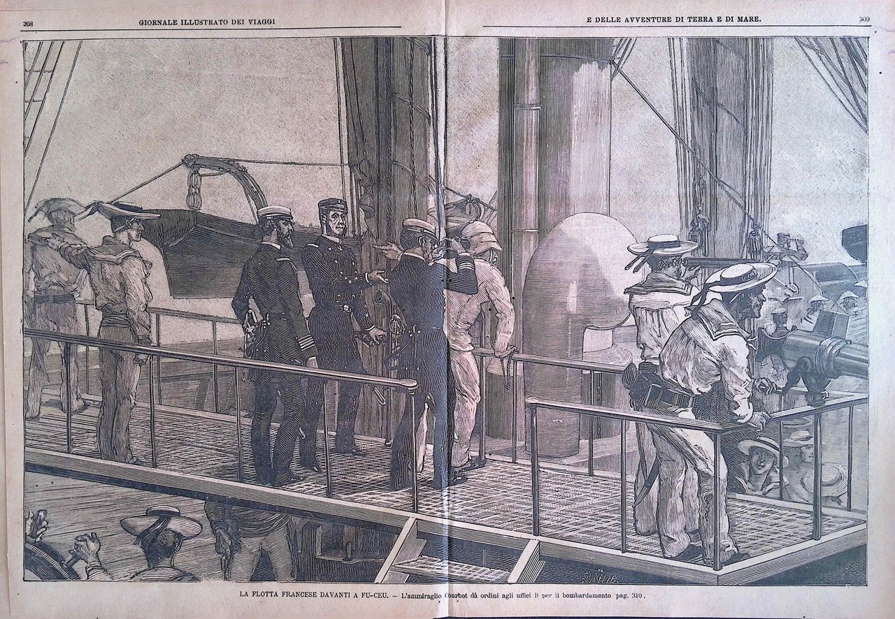 La flotta francese davanti a Fu-Ceu (Stampa a 2 pagine)