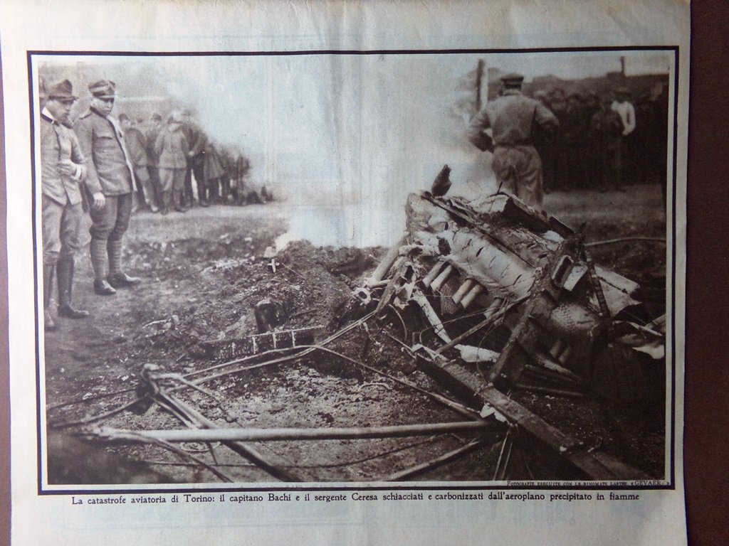 La catastrofe aviatora di Torino: il capitano Bachi e il sergente Ceresa schiacciati e carbonizzati dall'aeroplano precipitato in fiamme