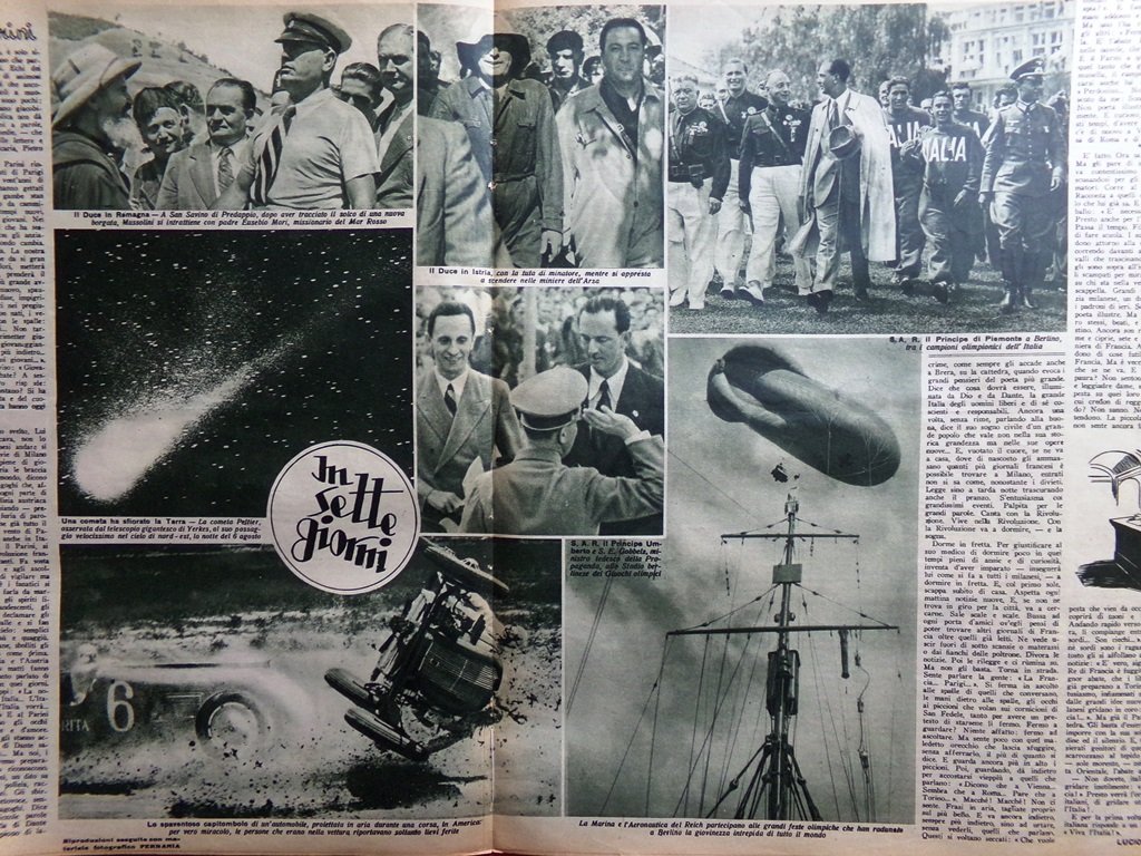 Avvenimenti: il duce in Romagna e in Istria, il principe di Piemonte a Berlino tra i campioni olimpionici (servizio in 2 pagine)