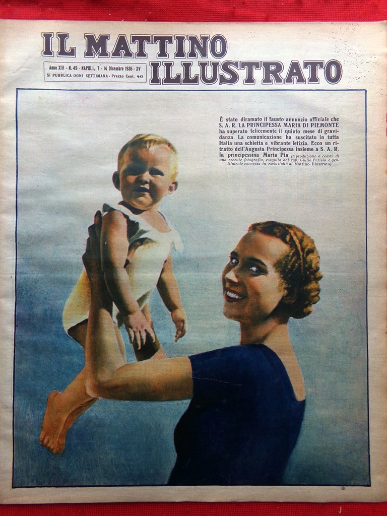 È stato diramato il fausto annunzio ufficiale che la principessa Maria di Piemonte ha superato felicemente il quinto mese di gravidanza. La comunicazione ha suscitato in tutta Italia una schietta e vibrante letizia. Ecco un ritratto dell'augusta principessa insieme alla principessina Maria Pia