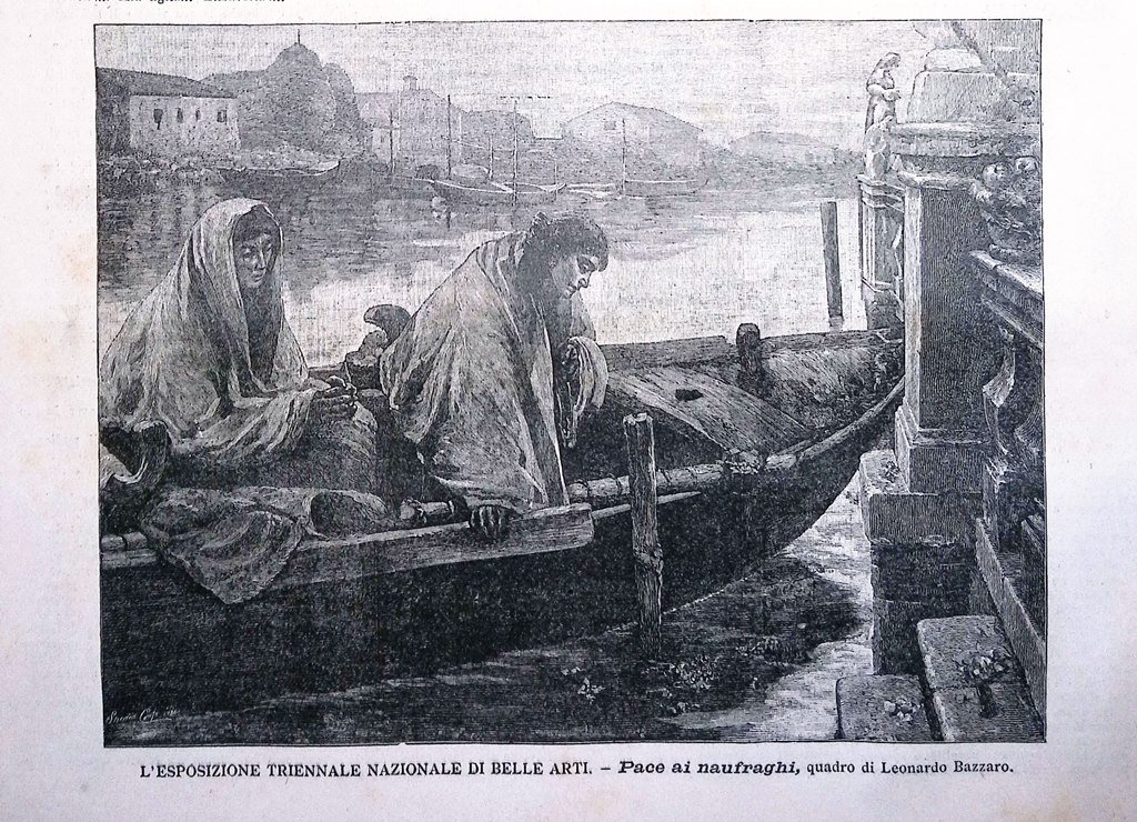 L'esposizione triennale nazionale di belle arti - pace ai naufraghi (quadro di Leonardo Bazzaro) (stampa)