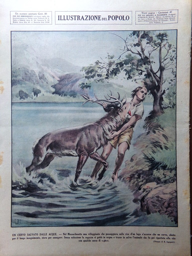 Nel Massachussetts una villeggiante che passeggiava sulle rive d'un lago s'accorse che un cervo, sfinito per il lungo inseguimento, stava per annegare. Senza esitazione la ragazza si gettò in acqua e trasse in salvo l'animale che fu poi riportato alla vita con qualche sorso di "gin" (B. Ingegnoli)