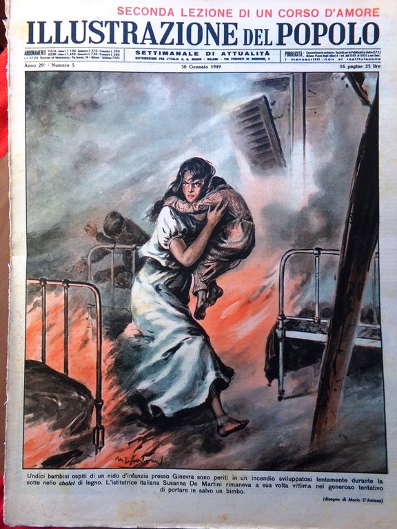 Undici bambini ospiti di un nido d'infanzia presso Ginevra sono periti in un incendio sviluppatosi lentamente durante la notte nello chalet di legno. L'istitutrice italiana Susanna De Martini rimaneva a sua volta vittima nel generoso tentativo di portare in salvo un bimbo (Mario D'Antona)