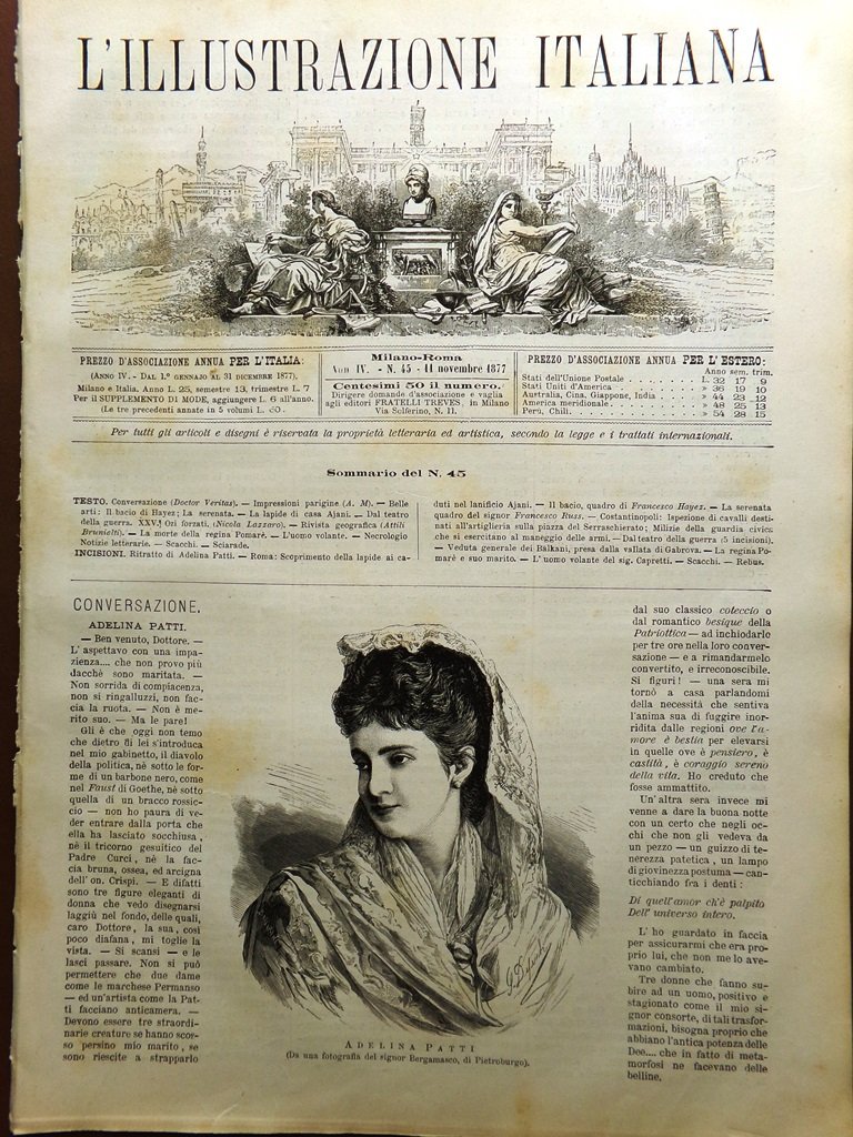 L'Illustrazione Italiana 11 Novembre 1877 Adelina Patti Pomare IV Lapide Ajani