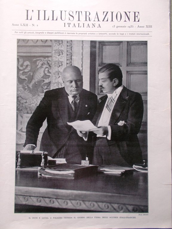 L'Illustrazione Italiana 13 Gennaio 1935 Duce Laval Ialiso Saar Bellini Torlonia