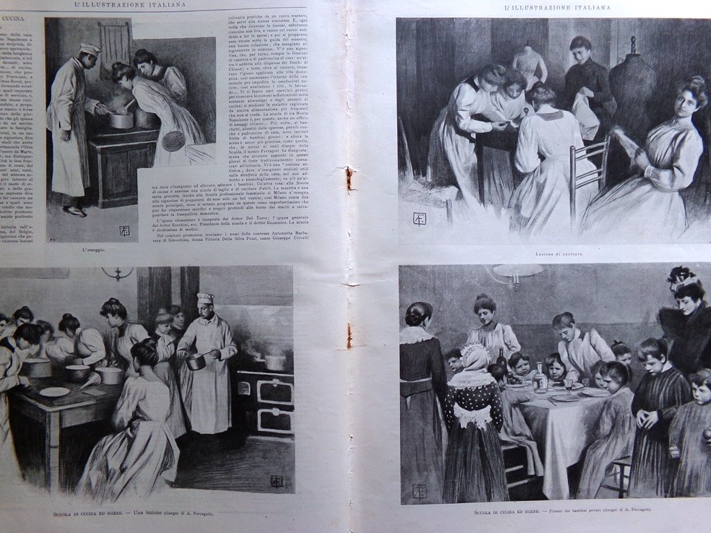 Scuola di cucina e igiene (due pagine con disegni di A. FerragutI)