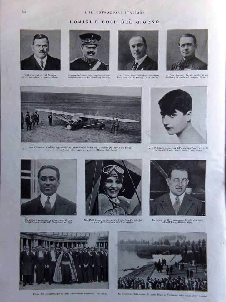 Uomini e cose del giorno: Lilly Dillenz, Ruth Elder, Costes, Le Brix, la morte di Roberto Forni
