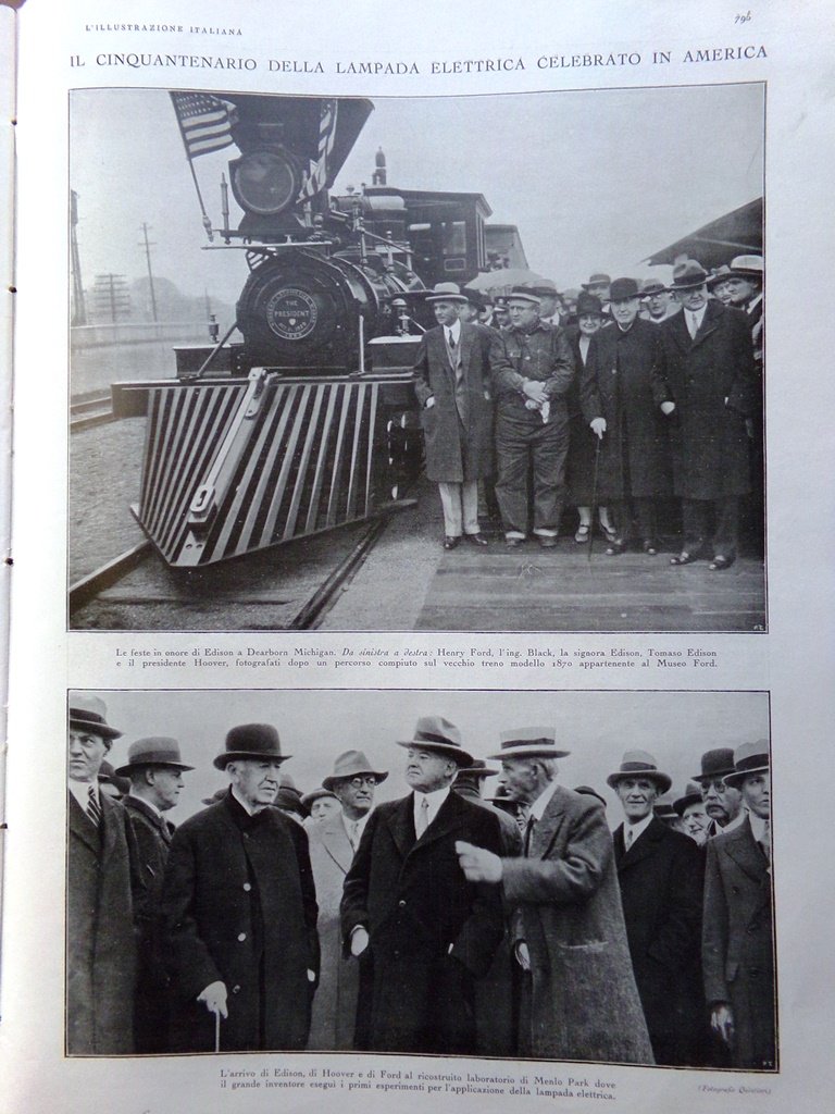 Il cinquantenario della lampada elettrica celebrato in America: Edison, Hoover e Ford
