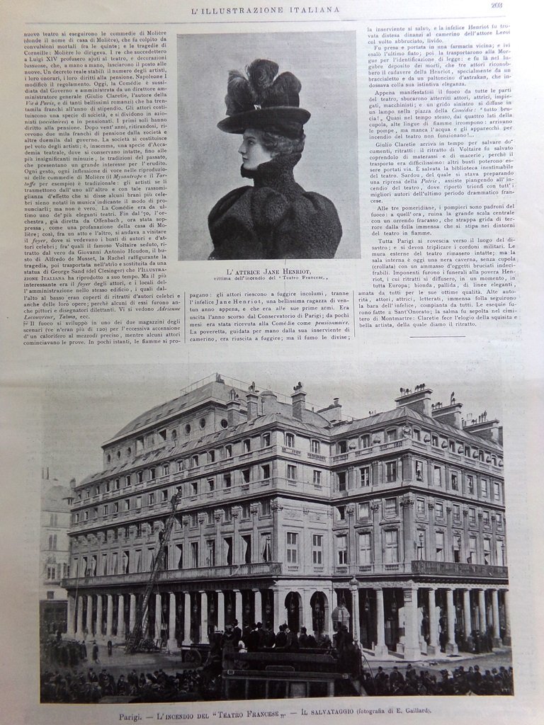 L'Illustrazione Italiana 18 Marzo 1900 Mantica Incendio Theatre Francais Henriot