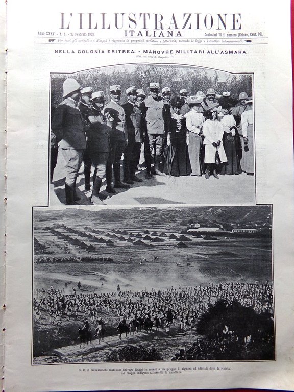 L'Illustrazione Italiana 23 Febbraio 1908 Regicidio di Lisbona Lottatori Eritrea | Periodici |