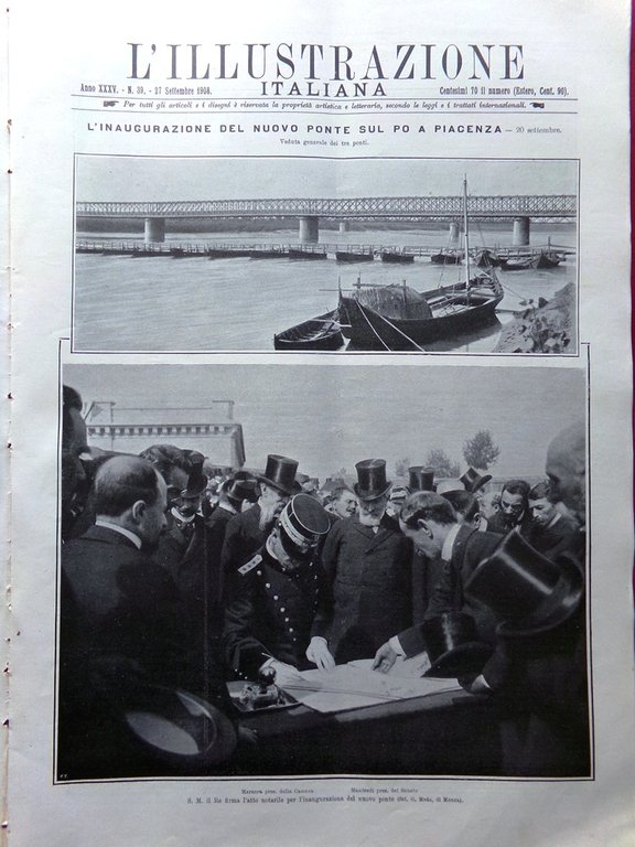 L'illustrazione Italiana 27 Settembre 1908 Piacenza Ponte Po De Sarasate Wright | Periodici |