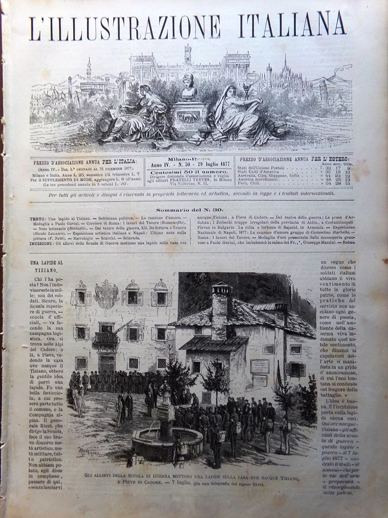 L'Illustrazione Italiana 29 Luglio 1877 Lapide Tiziano Lavori Tevere Gorini Asia
