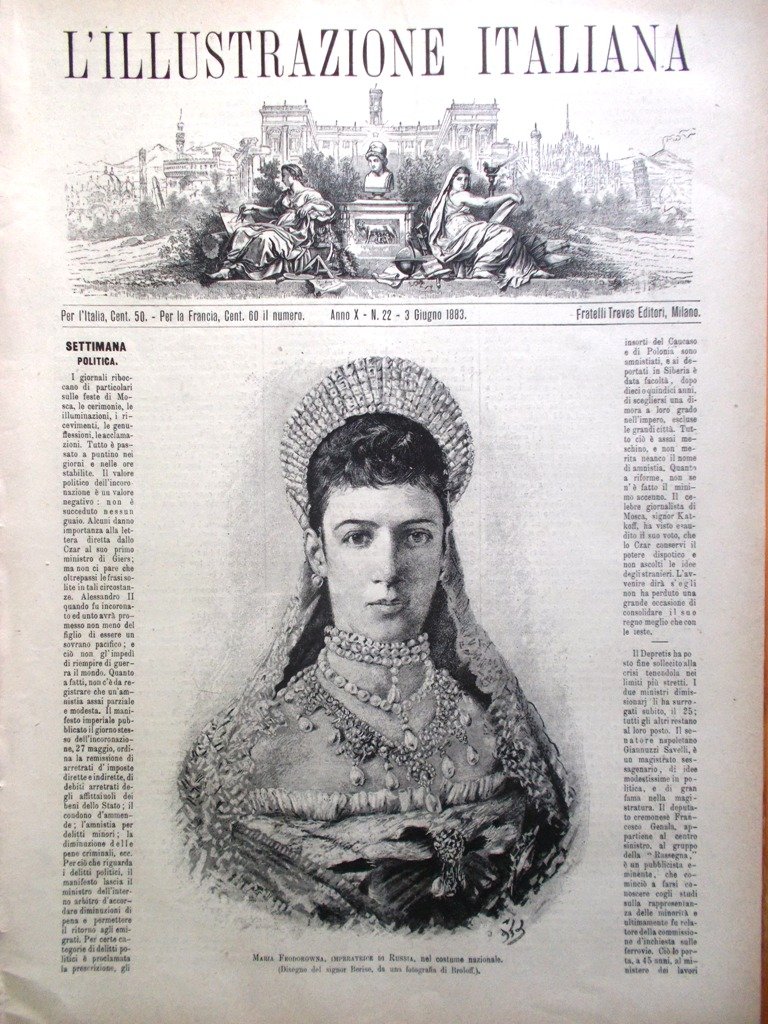 L'illustrazione Italiana 3 Giugno 1883 Feodorowna Zar di Russia Garibaldi Kader