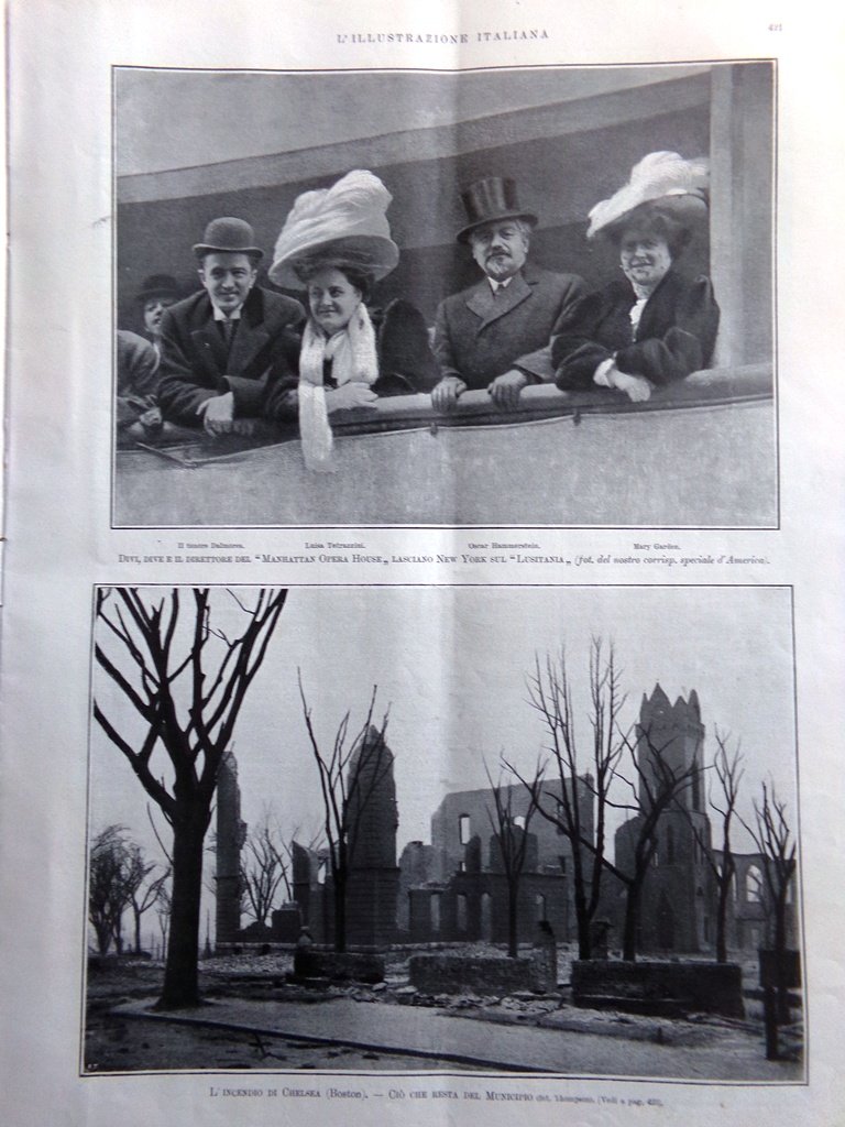Dalmores, Tetrazzini, Hammerstein, Garden lasciano New York sul Lusitania