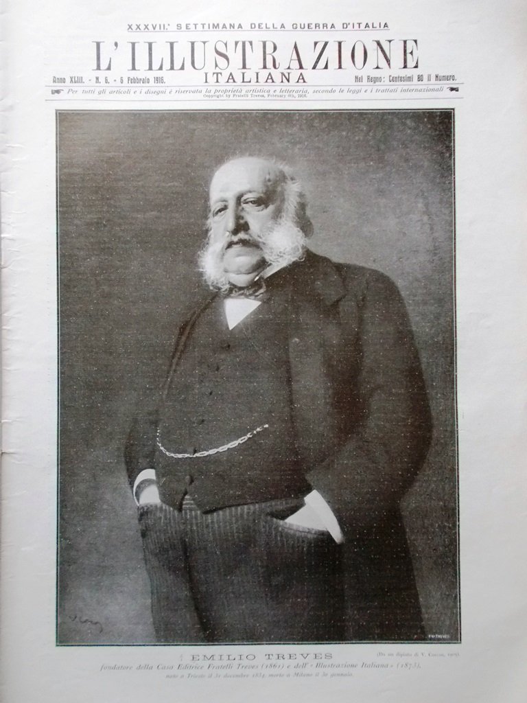 L'illustrazione Italiana 6 Febbraio 1916 WW1 Morte Emilio Treves Valona Serbia