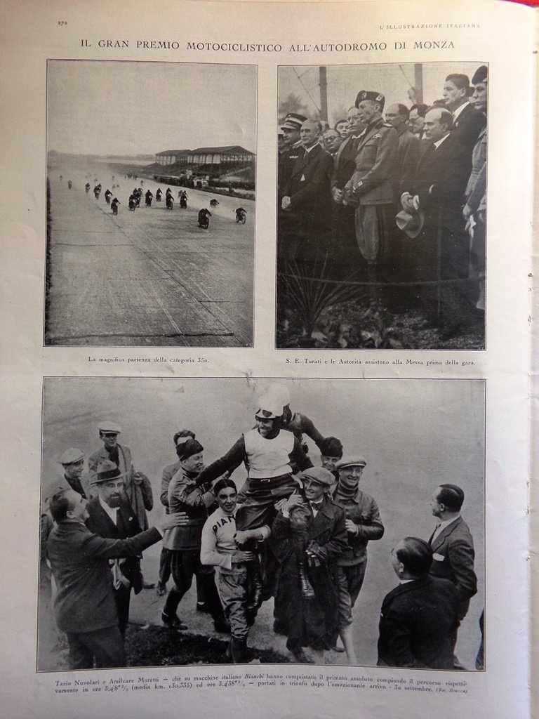 Il gran premio motociclistico all'autodromo di Monza: Tazio Nuvolari e Amilcare Moretti