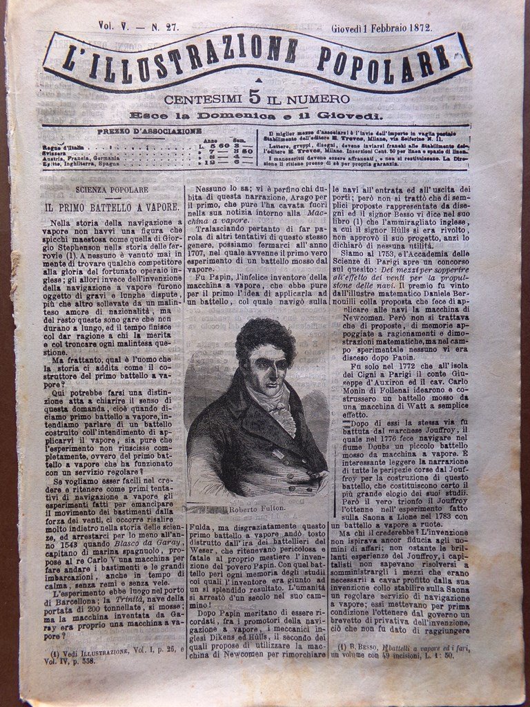 L'Illustrazione Popolare 1 Febbraio 1872 Battello Vapore Fulton Fitch Selva Nera