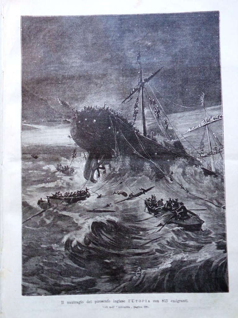 L'illustrazione Popolare 12 Aprile 1891 Naufragio Piroscafo Utopia Induno Milano