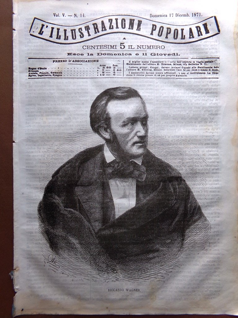 L'Illustrazione Popolare 17 Dicembre 1871 Cristoforo Colombo Pesto Wagner Cruz