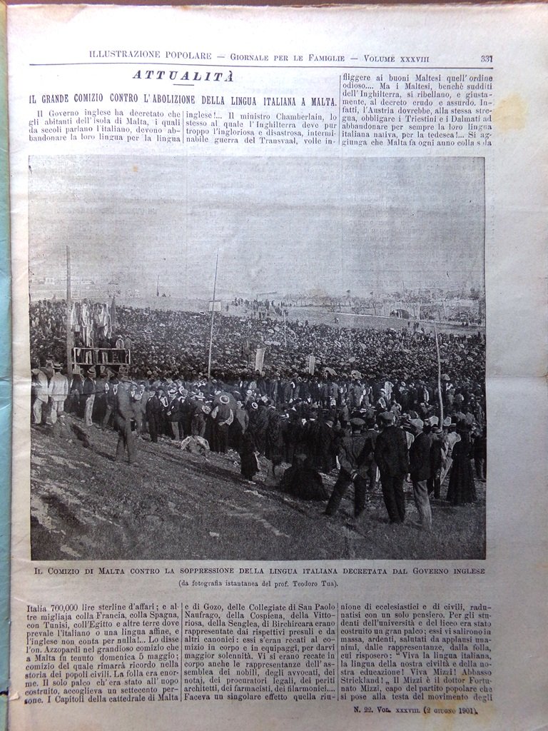 L'Illustrazione Popolare 2 Giugno 1901 Malta e Lingua Italiana Morelli Bocklin