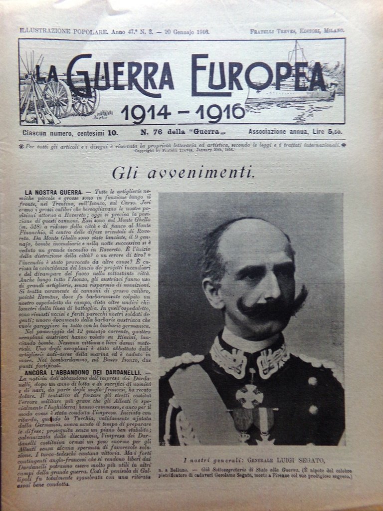 L'Illustrazione Popolare 20 Gennaio 1916 WW1 Baccelli Strigno Letizia Infermiera
