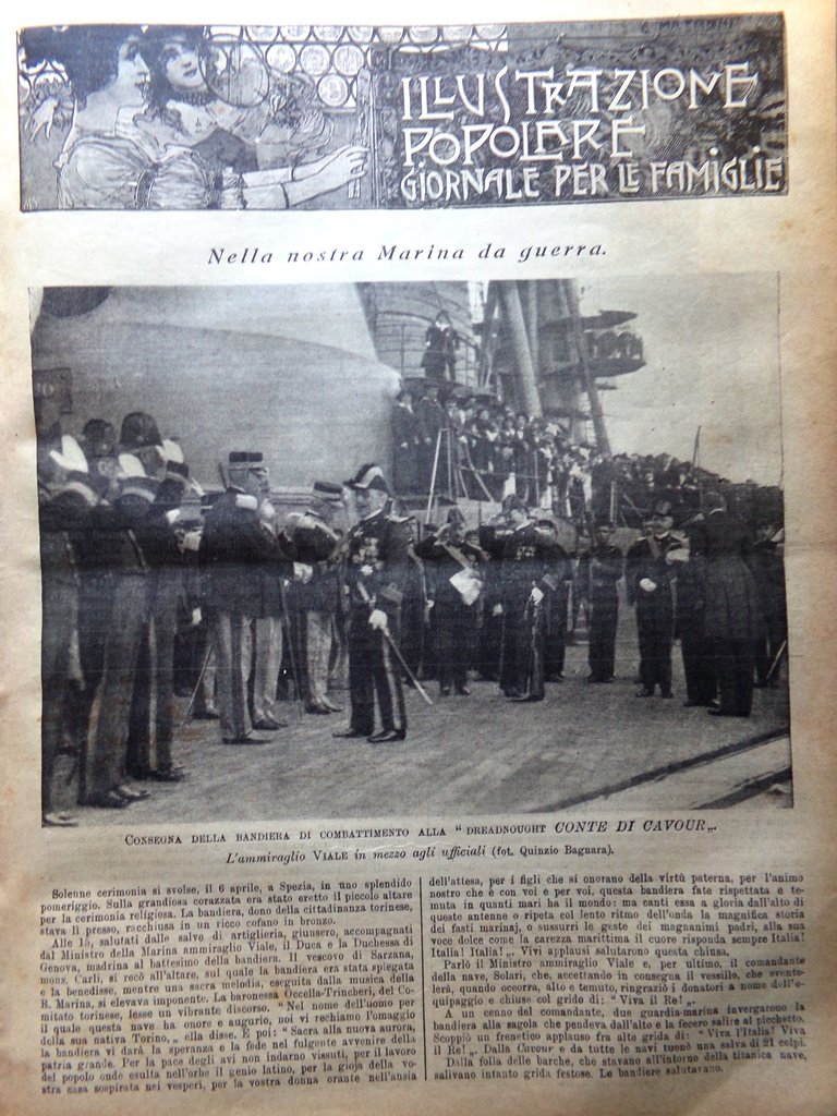 Consegna della bandiera di combattimento alla dreadnought Conte di Cavour