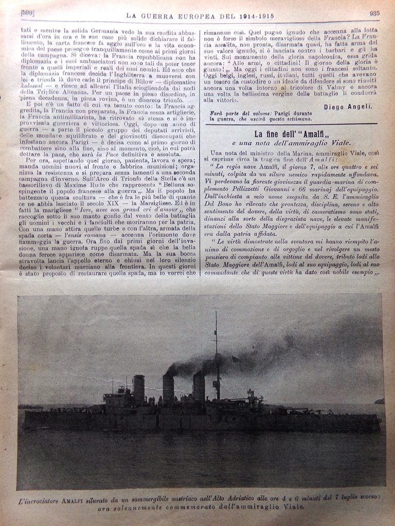 L'incrociatore Amalfi silurato da un sommergibile austriaco nell'Alto Adriatico