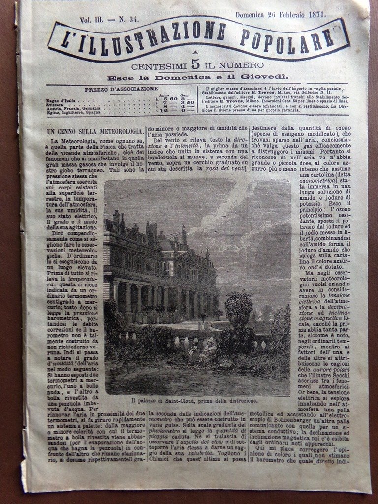 L'illustrazione Popolare 26 Febbraio 1871 Barelle Fucino Palazzo di Saint-Cloud