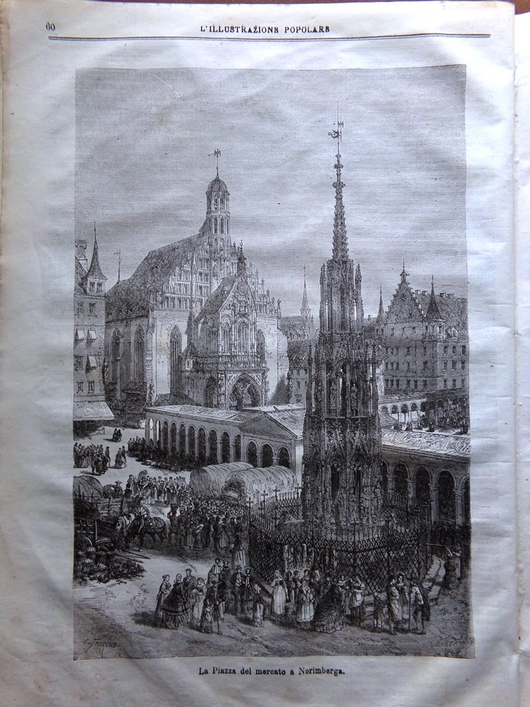 La piazza del mercato e la bella fontana a Norimberga (stampa)