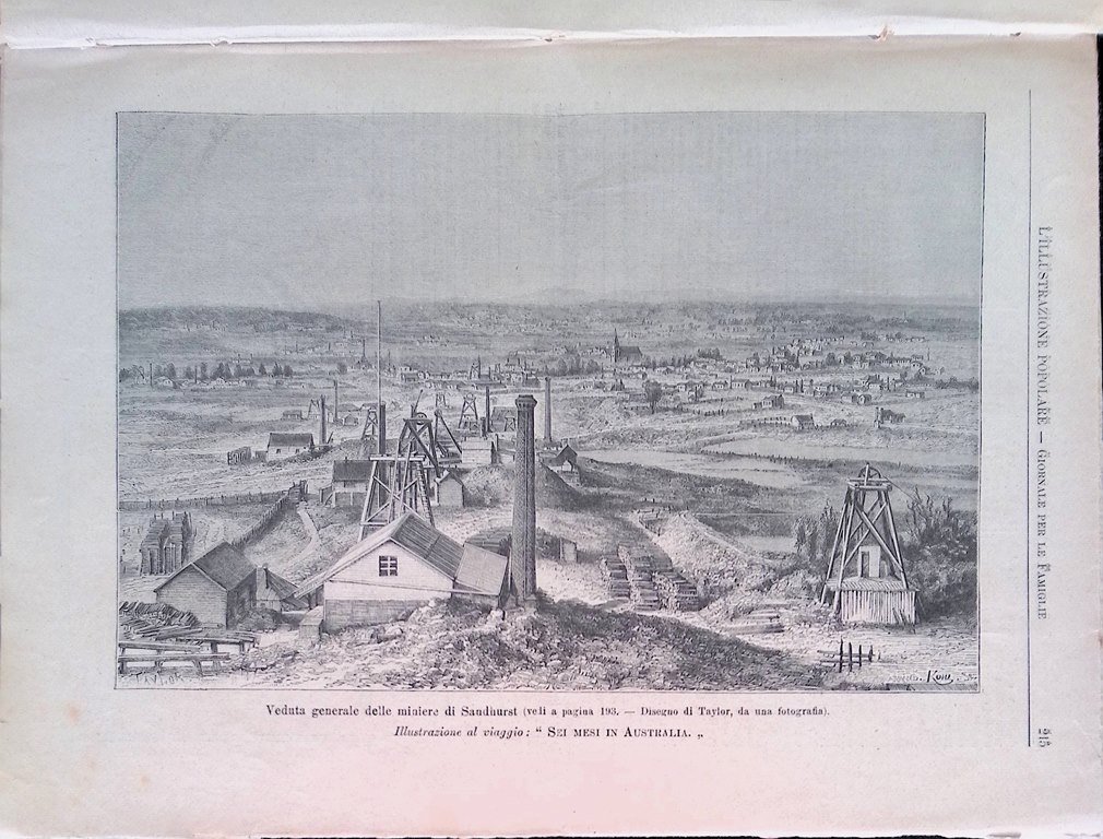 Viaggi - Sei mesi in Australia (di Desiderato Charnay) (a puntate) - veduta di Sandhurst, il fiume Yarra-Yarra, Vigneto di Sant'Uberto