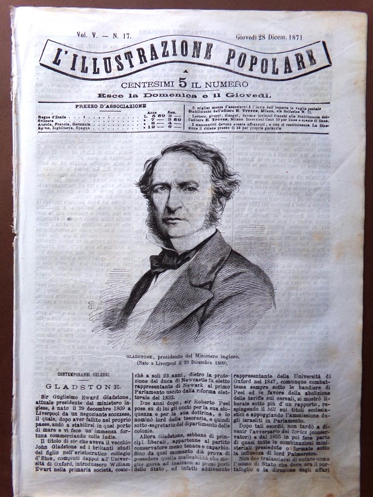 L'Illustrazione Popolare 28 Dicembre 1871 Gladstone Frejus Dora Morte Civinini