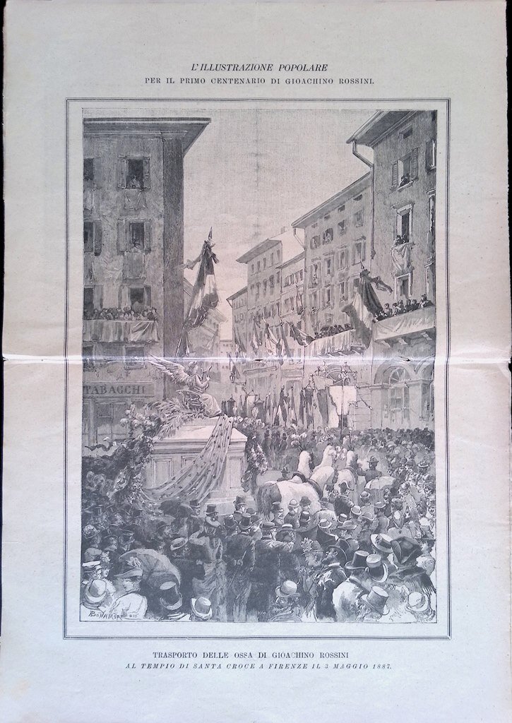 Trasporto delle ossa di Gioachino Rossini al tempio di Santa Croce a Firenze (stampa a 2 pagine)
