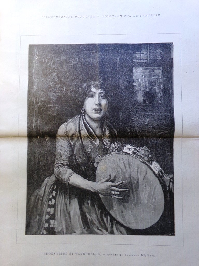 Suonatrice di tamburello (quadro di Vincenzo Migliaro)(Stampa a 2 pagine)