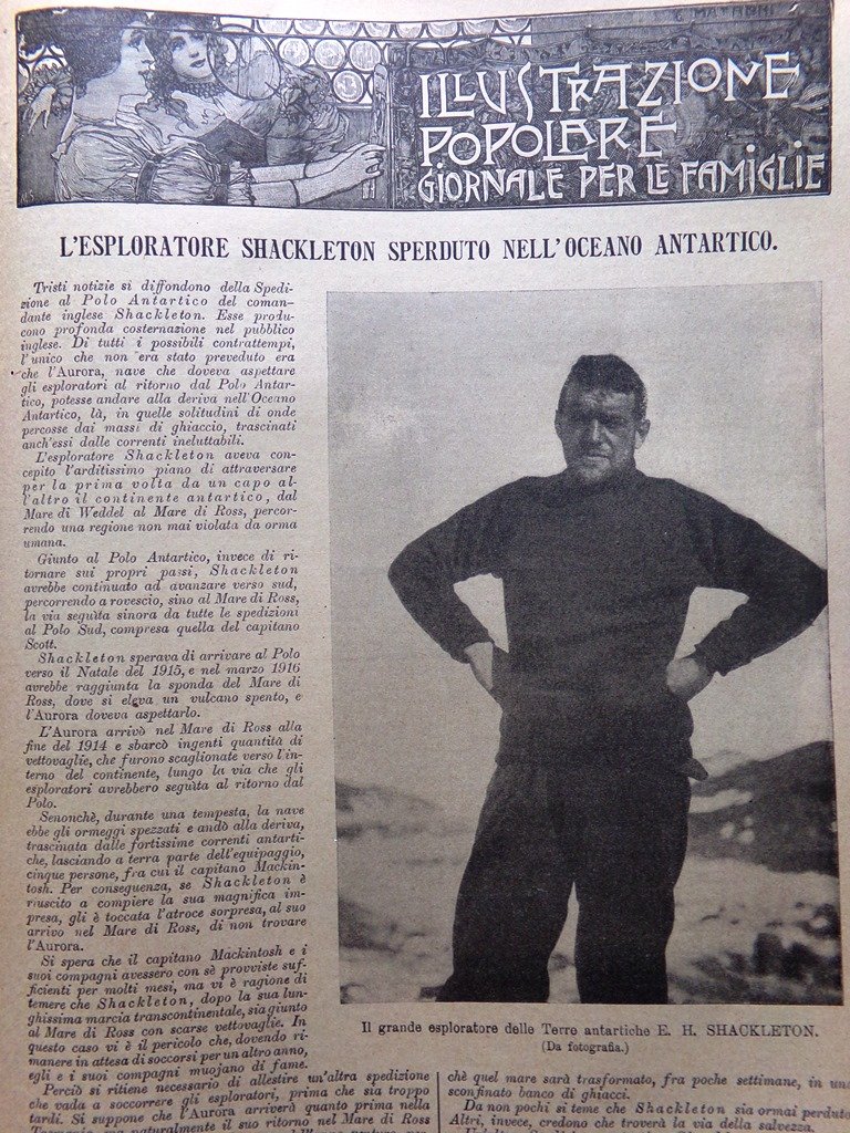 L'Illustrazione Popolare 6 Aprile 1916 WW1 Shackleton Antartide Paura Germania