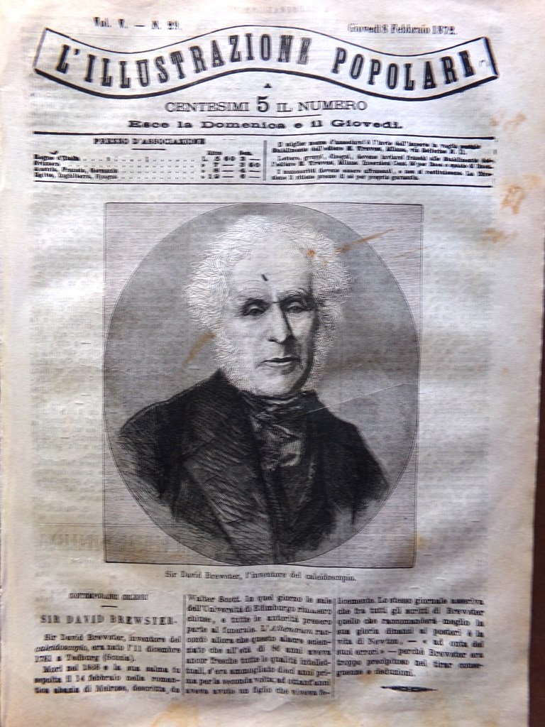 L'Illustrazione Popolare 8 Febbraio 1872 Caleidoscopio Brewster Dickens Turchia